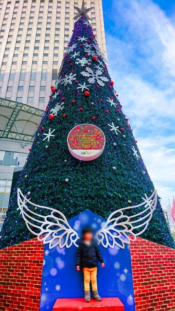クリスマスツリーの前で記念写真。